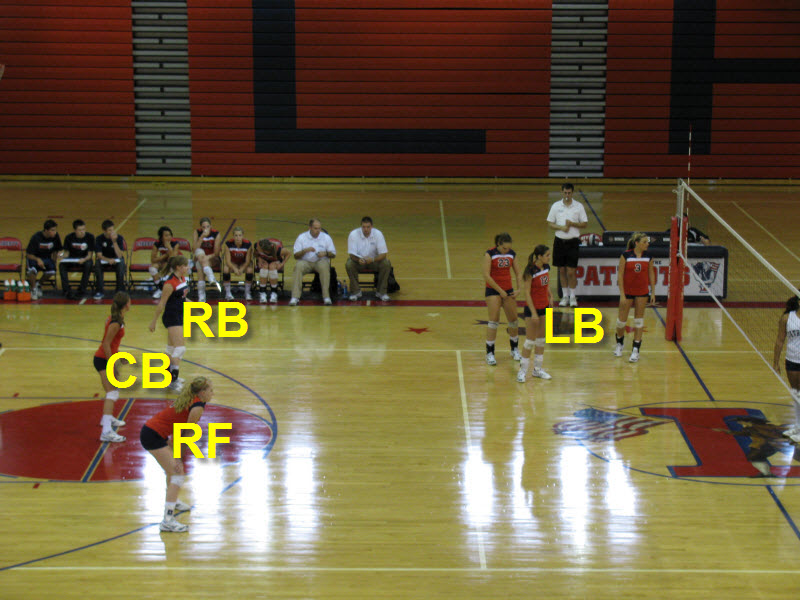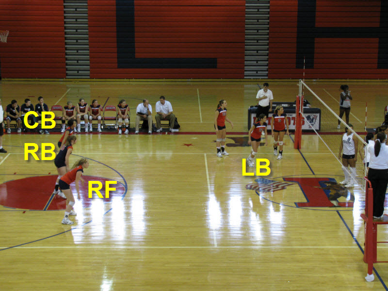 Here's where they stood for the third receive. The setter is LB, and the opposite is RF, still